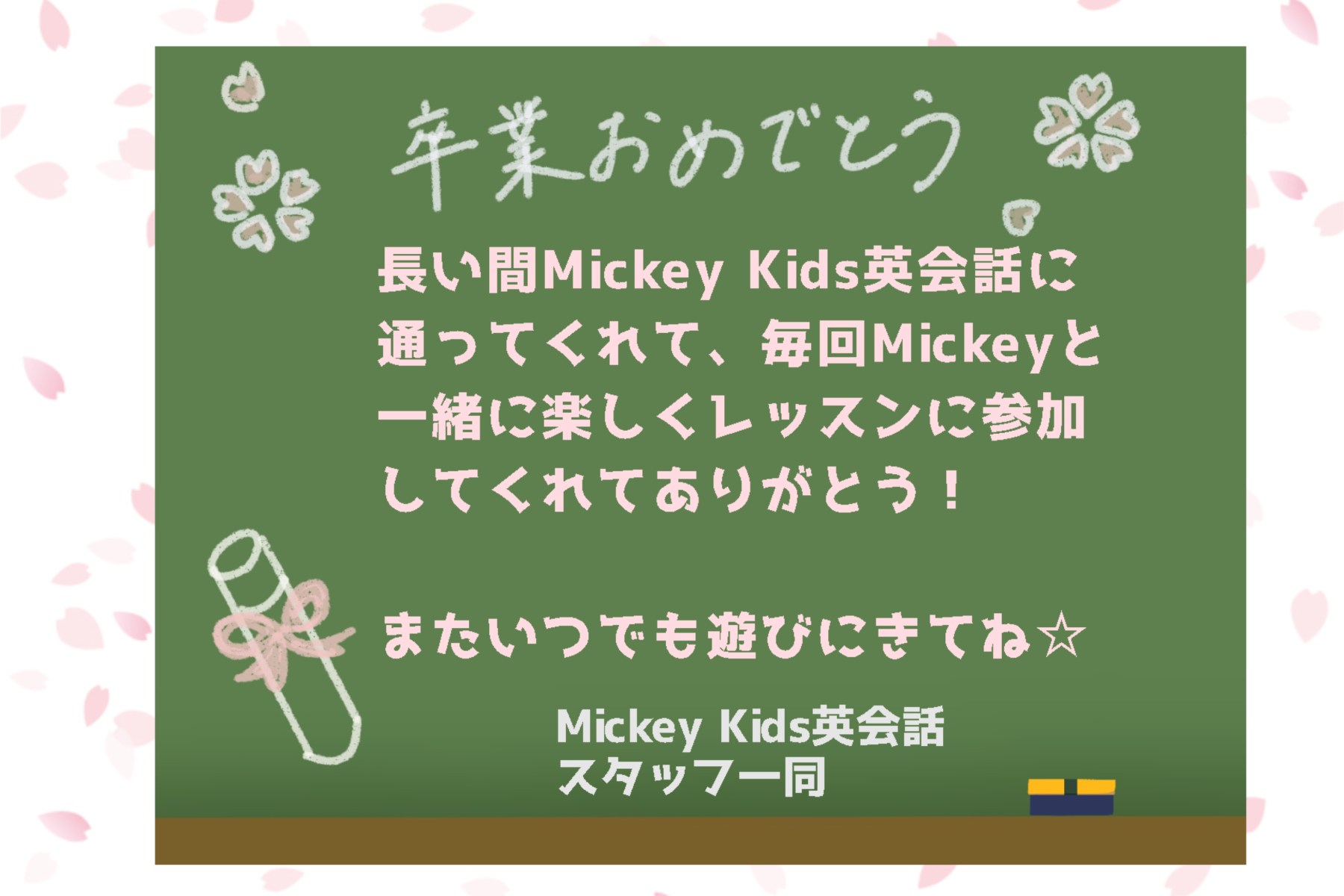 3月はミッキーキッズでも教室を卒業する生徒がいます。